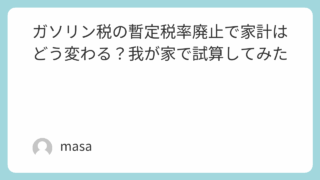 ガソリン税の暫定税率廃止で家計はどう変わる?暫定税率25.1円/Lに消費税がかかっていたため、実際の軽減効果は約27.6円/Lと考えれます。資源エネルギー庁の公式動画と日経新聞の試算を参考に、用途別に我が家の走行距離を積み上げ、計算式を明示して試算した記事です。