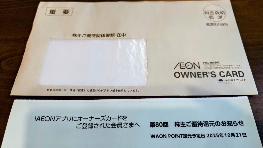 2025年10月、イオンから「株主ご優待返金のお知らせ」が届きました。