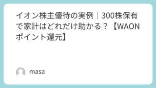 配当・優待 イオン株主優待の実例|300株保有で家計はどれだけ助かる?【WAONポイント還元】 本記事は、イオン系列を日常的に利用している会社員として、300株保有時の株主優待(WAONポイント還元)が家計にどれくらいプラスになるのかを実体験ベースで記録したものです。投資の推奨ではなく、「生活に近い企業を応援する中で感じたこと」を静か... 2025.11.08 配当・優待