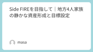 暮らしとFIREの記録 Side FIREを目指して|地方4人家族の静かな資産形成と目標設定 正社員で働きながら、Side FIREという選択肢を静かに考える。資産500万円から始める、暮らしと目標設定の記録。 2025.11.18 暮らしとFIREの記録