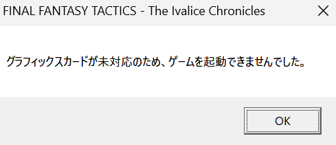 「グラフィックスカードが未対応のため、ゲームを起動できませんでした。」