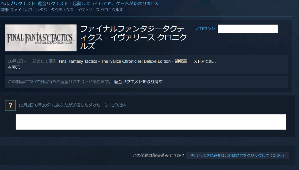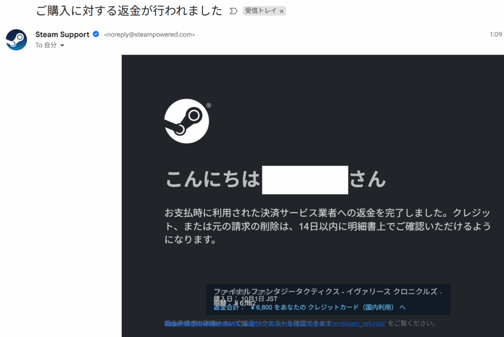 すべての条件を満たしており、Steamのサポートページから返金申請を行いました。