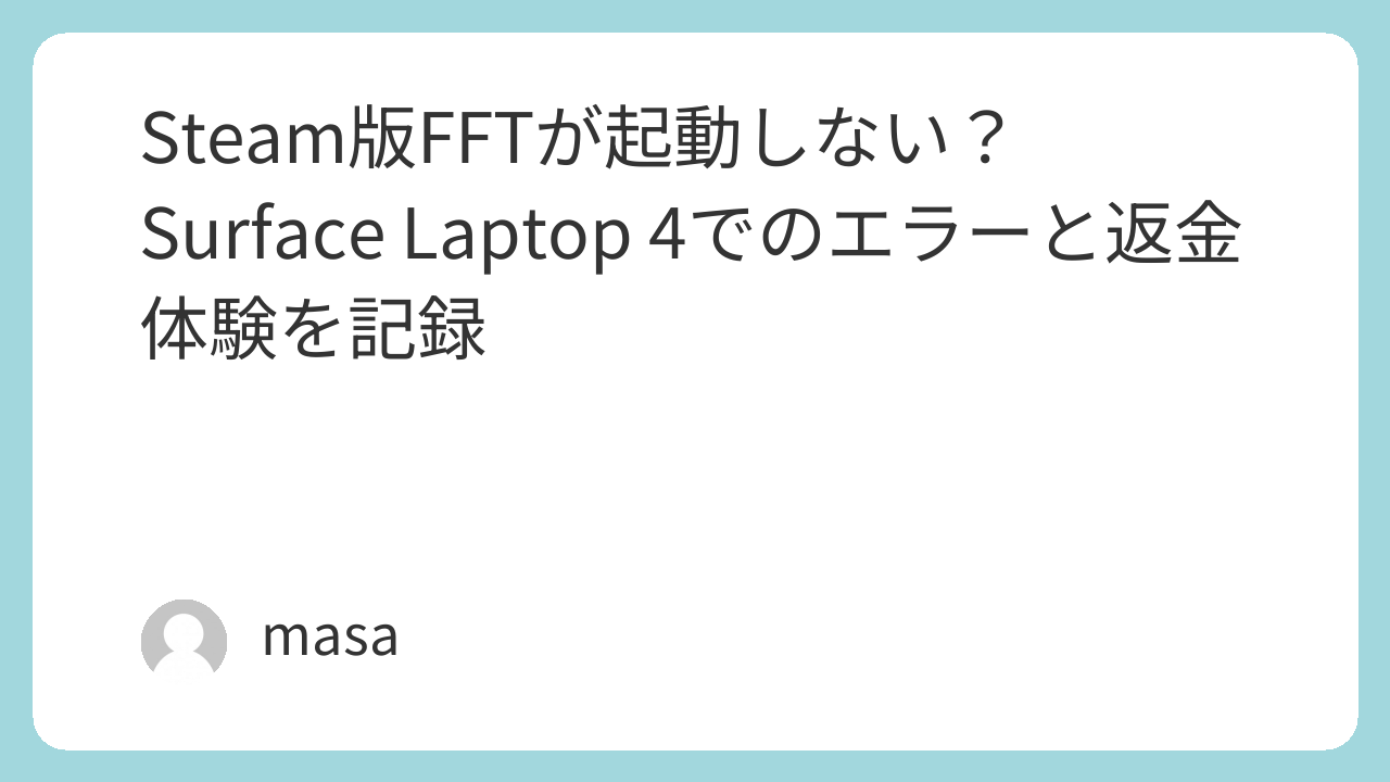 - Surface Laptop 4ではFFT(Steam版)は起動できなかった