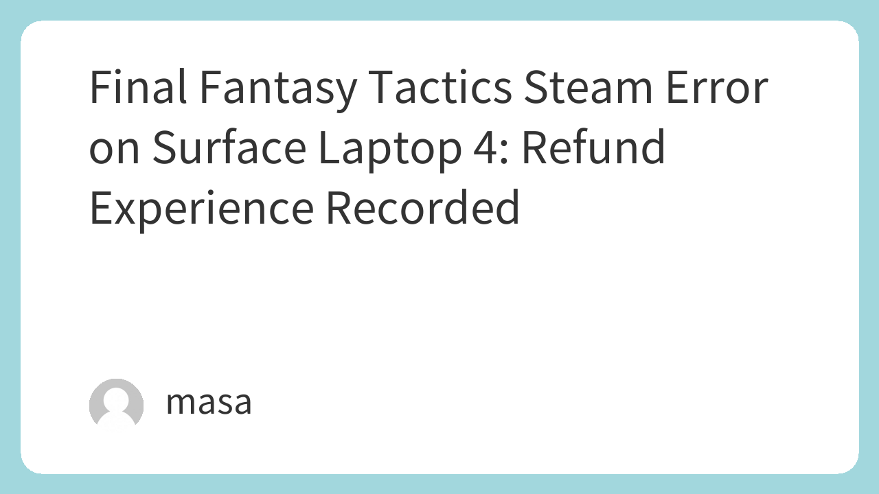 Final Fantasy Tactics Steam Error on Surface Laptop 4: Refund Experience Recorded