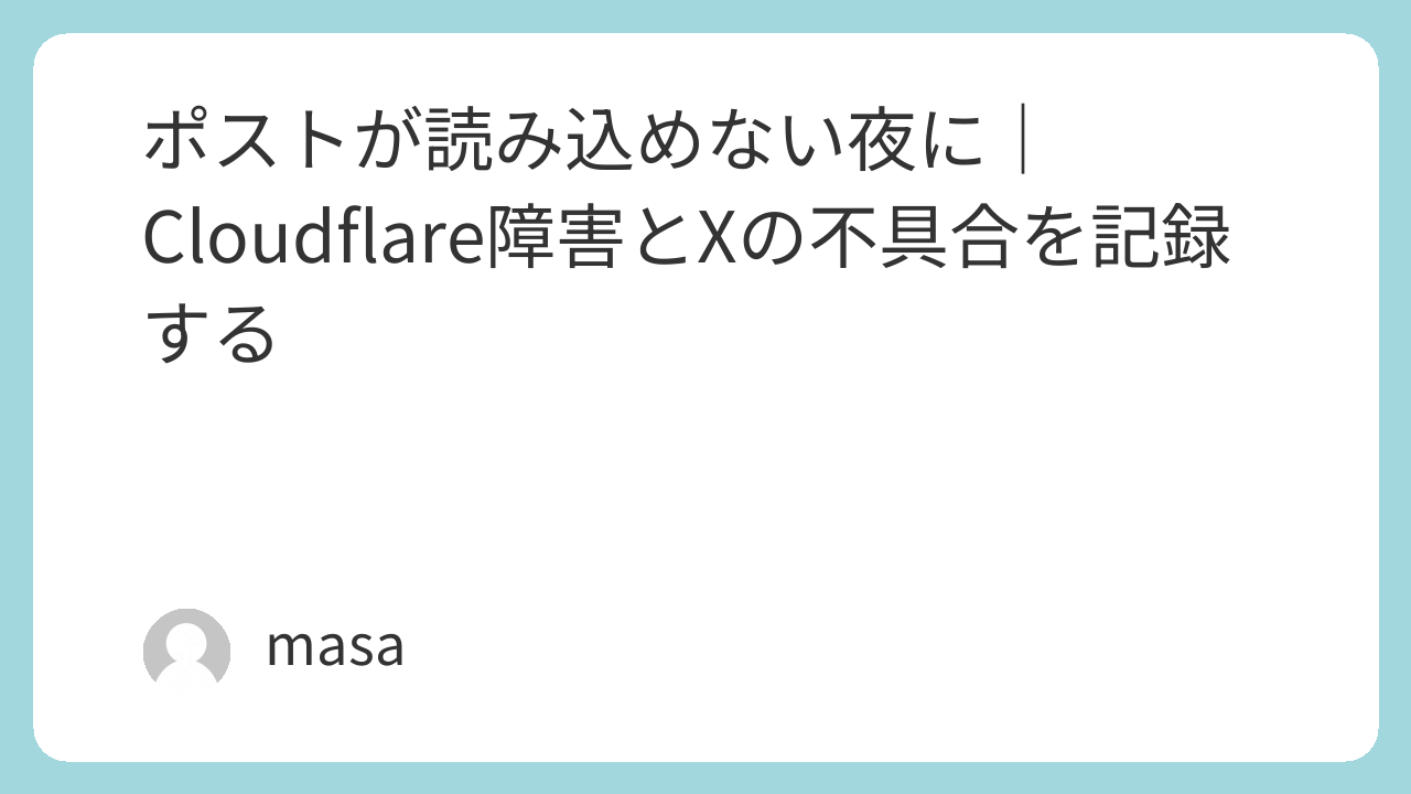 調べてみると、Cloudflareで障害が発生しているとのこと。